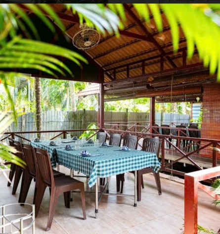 Ẩm Thực Sân Vườn Phú Hải – Quán ăn dân dã tại Mỹ Tho chuyên các món đồng quê tươi sống, nổi bật với Gà Đốt Rượu và Cá Lóc Hấp Bí Ngòi.